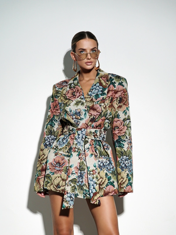 Jacket ABOUT YOU is a jacket for every occasion! Fashionable oversized cut combined with a belt is a hit this spring! On the shoulders of the pillows. Comes in one size.