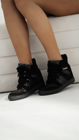 Step into the world of style with our unique sneakers! These black high boots are a combination of comfort and modern design, perfect for those who appreciate originality. Layered construction and striped details add character, while the "Lila Lou" logo is a guarantee of recognition. Made of high quality materials, ensure comfortable wearing all day long. Perfect for every day, work or meeting friends. Express yourself and add a touch of rebellion to your styling!
