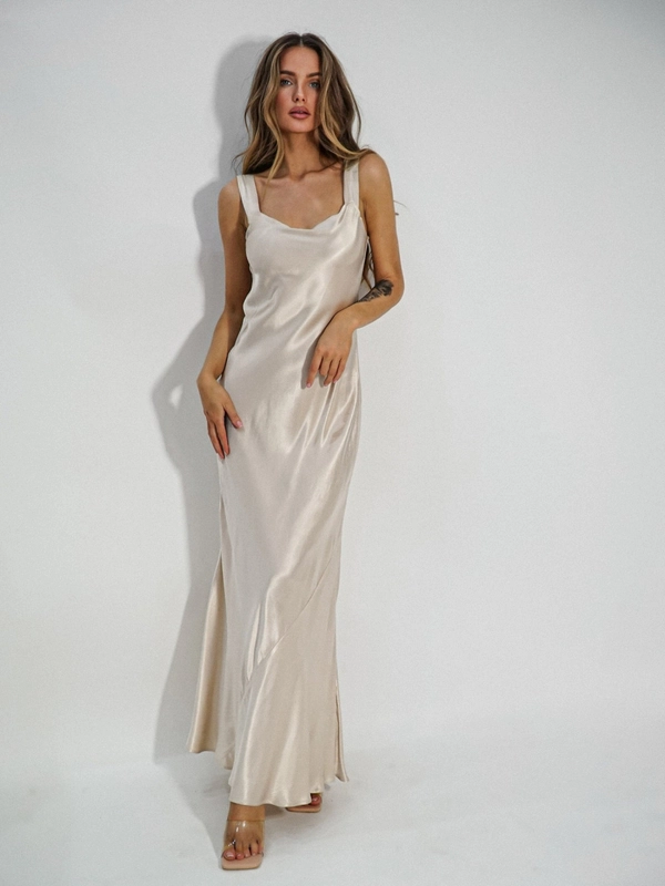 Discover the essence of femininity in our MAGDALENA dress. Made of flowing satin fabric, it gently flows around the figure, emphasizing its assets, while subtle straps and a loose neckline add lightness and gracefulness. The maxi length makes it ideal for special occasions such as weddings, balls and romantic dinners, as well as for everyday styling. Feel like a star on the red carpet.