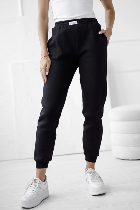 BENSON sweatpants with ribbed hem in black. They are slightly insulated on the inside, and their fitted cut makes your legs look extremely shapely. Features two pockets on the front.