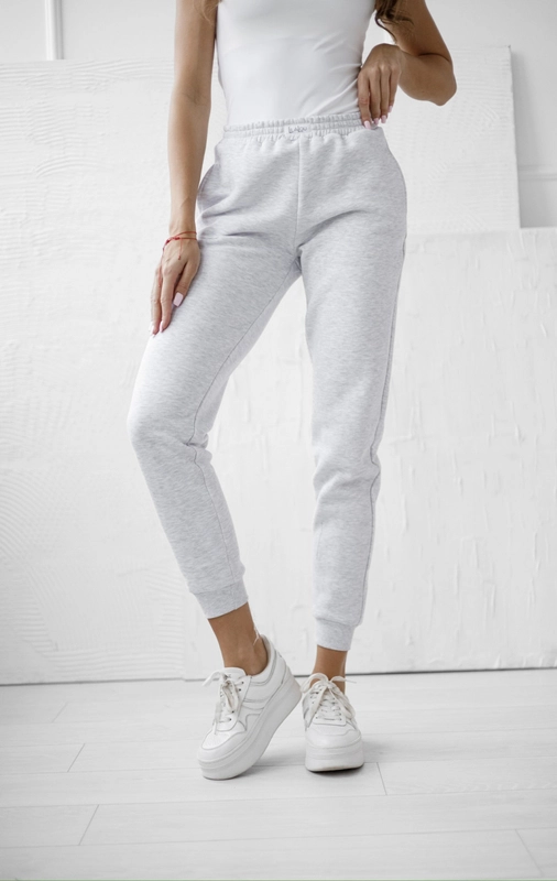 - Cut: sporty with a close-fitting leg finished with a drawstring hem
