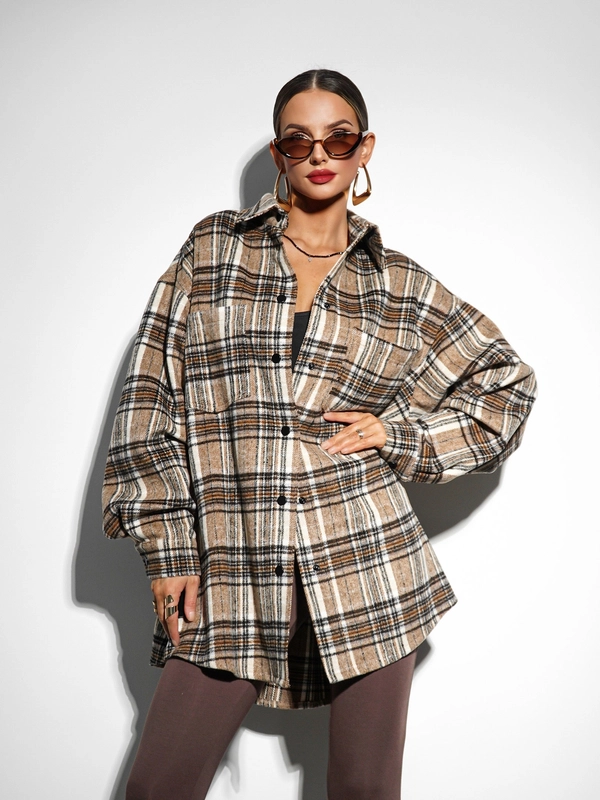 Modna koszula oversize, wykonana z grubszego materiału, dzięki czemu z powodzeniem może pełnić funkcję lekkiej odzieży wierzchniej. To idealne połączenie casualowego stylu i wygody, które sprawdzi się w wielu codziennych stylizacjach. Luźny fason zapewnia komfort i swobodę ruchów, a klasyczny kołnierzyk oraz zapinanie na napy nadają jej uniwersalnego charakteru. Koszula świetnie prezentuje się zarówno w zestawieniu z jeansami i t-shirtem, jak i narzucona na sukienkę czy top.