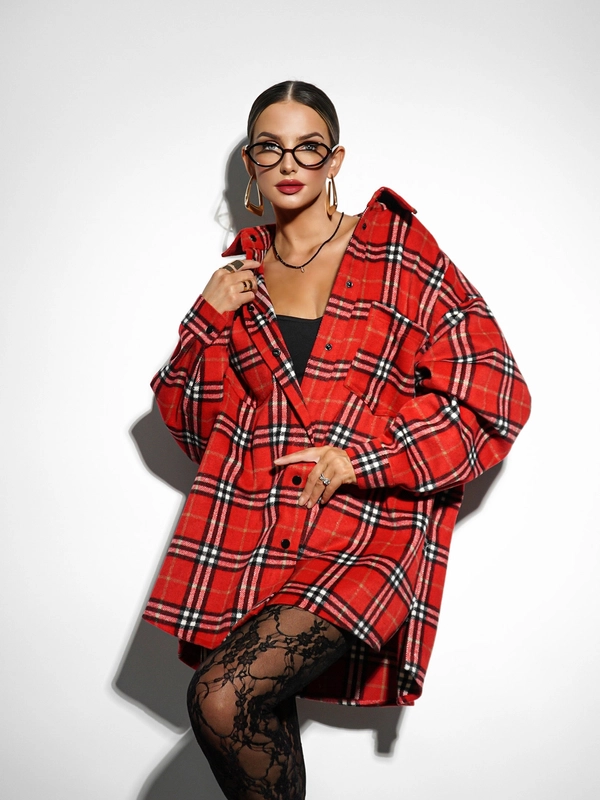 Modna koszula oversize, wykonana z grubszego materiału, dzięki czemu z powodzeniem może pełnić funkcję lekkiej odzieży wierzchniej. To idealne połączenie casualowego stylu i wygody, które sprawdzi się w wielu codziennych stylizacjach. Luźny fason zapewnia komfort i swobodę ruchów, a klasyczny kołnierzyk oraz zapinanie na napy nadają jej uniwersalnego charakteru. Koszula świetnie prezentuje się zarówno w zestawieniu z jeansami i t-shirtem, jak i narzucona na sukienkę czy top.