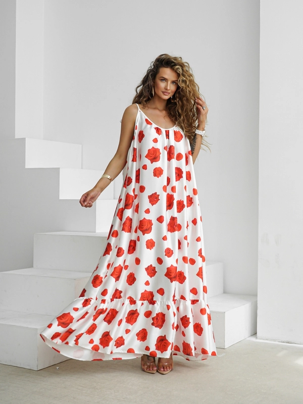 Ta długa sukienka do kostek to esencja kobiecego uroku i letniej lekkości. Uszyta z delikatnego, zwiewnego materiału pięknie układa się na sylwetce, subtelnie falując przy każdym ruchu. Cienkie ramiączka dodają jej subtelności i sprawiają, że idealnie nadaje się na ciepłe dni, wakacyjne spacery czy romantyczne wieczory. Sukienka dostępna jest w wielu zachwycających wzorach i kolorach - każda wersja przyciąga spojrzenia i pozwala wyrazić własny styl.