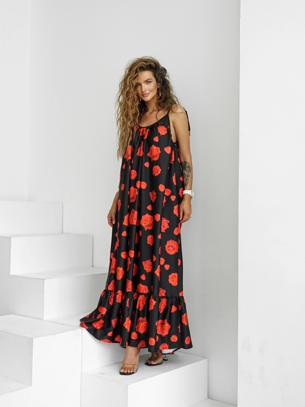 Ta długa sukienka do kostek to esencja kobiecego uroku i letniej lekkości. Uszyta z delikatnego, zwiewnego materiału pięknie układa się na sylwetce, subtelnie falując przy każdym ruchu. Cienkie ramiączka dodają jej subtelności i sprawiają, że idealnie nadaje się na ciepłe dni, wakacyjne spacery czy romantyczne wieczory. Sukienka dostępna jest w wielu zachwycających wzorach i kolorach - każda wersja przyciąga spojrzenia i pozwala wyrazić własny styl.