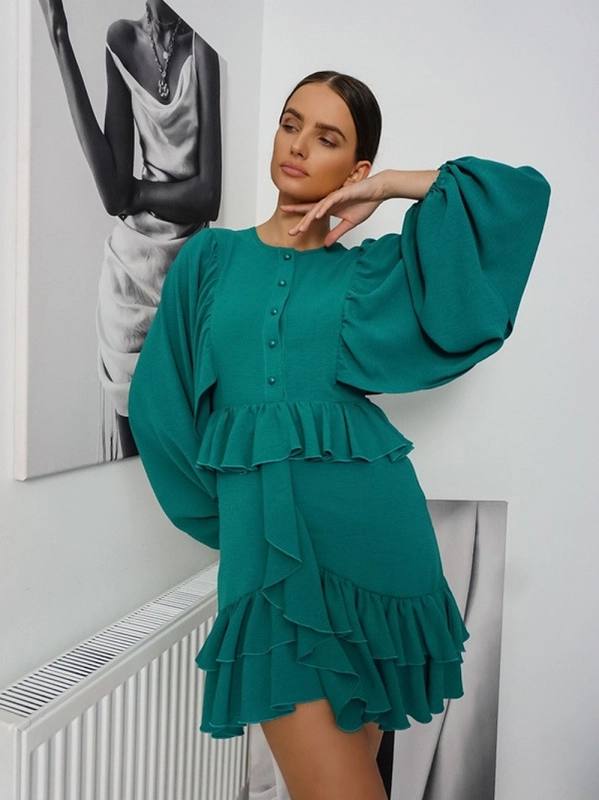 Sukienka z falbankami to idealne połączenie elegancji i romantyzmu. Wykonana z lekkiego materiału, sukienka delikatnie opada na sylwetkę, a falbany dodają jej lekkości i uroku. Idealna na letnie wyjścia, spotkania z przyjaciółmi czy nawet bardziej formalne okazje. W subtelny sposób podkreśla kobiecość, sprawiając, że każda kobieta poczuje się w niej wyjątkowo.