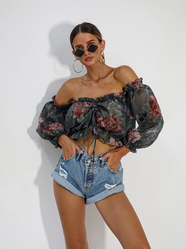 Bluzka hiszpanka NALA zielona kwiaty