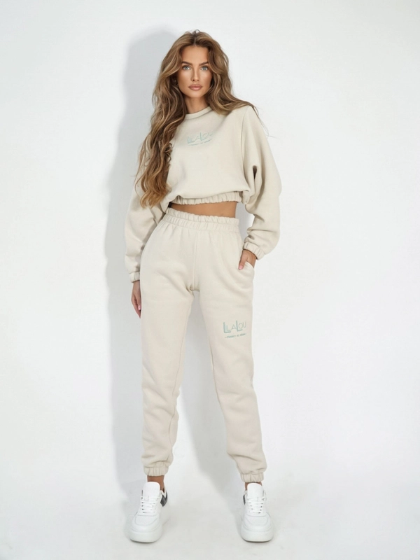 Stylowy, dwuczęściowy komplet dresowy to połączenie wygody i modnego looku. Krótka bluza z kapturem i nadrukiem podkreśla sylwetkę, a spodnie z wysokim stanem i elastyczną talią zapewniają komfort noszenia. idealny wybór na co dzień , do miasta lub na luźne spotkania ze znajomymi.