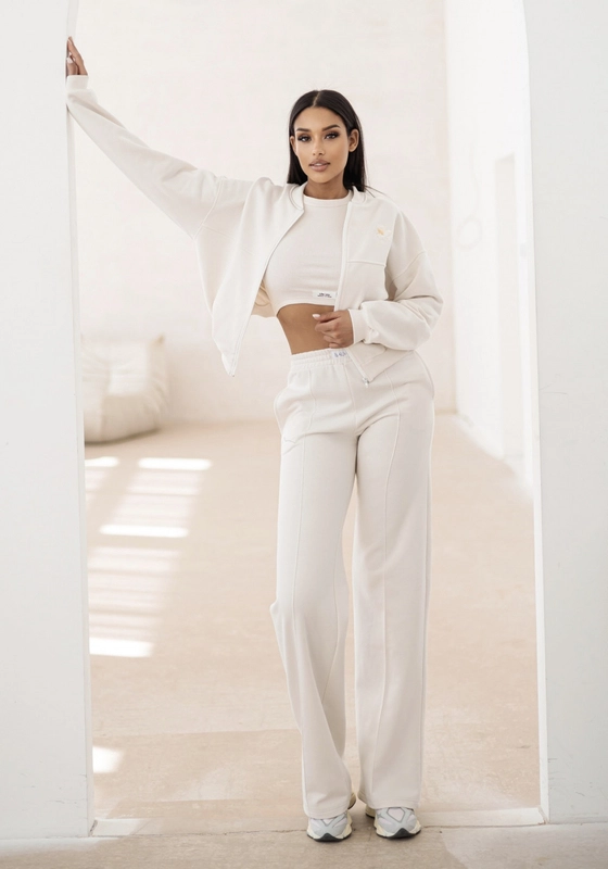 Odkryj dres KIM, który łączy w sobie wygodę i modny design. Ten wyjątkowy zestaw składa się z bluzy i spodni z szeroką nogawką, które idealnie do siebie pasują. Uroczy kwiatowy wzór i napis "Lila Lou" dodają charakteru i sprawiają, że całość wyróżnia się na tle innych. Wykonany z miękkiego i przyjemnego materiału, zapewni Ci komfort przez cały dzień. Idealny na relaks w domu, spacer po mieście czy spotkanie ze znajomymi.