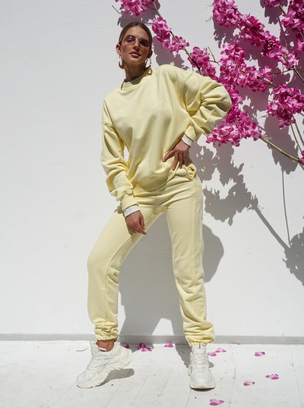 Wygodny i stylowy dres dwuczęściowy. Wykonany z wysokiej jakości bawełny z domieszką elastanu, co gwarantuje komfort noszenia i zapewnia dużą swobodę ruchów. Ozdobiony subtelnym białym haftem logo LilaLou na bluzie. Bluza posiada dodatkowe wstawki kolorystyczne przy kołnierzyku i rękawach. Spodnie posiadają szeroką gumkę w pasie, dzięki czemu spodnie dobrze leżą. Nogawki w spodniach zakończone ściągaczem.