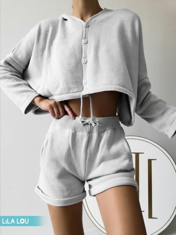 Komplet swetrowy Sandi to idealny towarzysz wszystkich letnich podróży! Zwiewna góra i spodenki nie krępujące ruchów sprawdzą się nawet podczas długiej wędrówki. Dostępny w jednym rozmiarze i kilku kolorach.